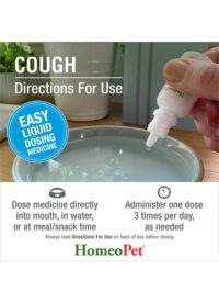 HomeoPet COUGH may naturally and safely help treat your dog’s, cat’s, or other pet’s coughing symptoms. This veterinarian-formulated natural remedy is safe and gentle for pets of all ages and may help relieve barky, wet or dry coughs, as well as a hacking cough, sneezing, and dry nose often associated with kenneling or boarding.