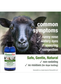 A natural remedy that may help provide support for certain nasal and sinus tract issues in horses, goats, sheep, cattle, and other large animals. This safe and gentle remedy may help provide temporary relief from symptoms such as a runny nose, watery eyes, sneezing, and congestion.