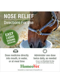 Veterinary-formulated, easy to dose, and available without a prescription, this cost-effective liquid treatment is simple and convenient to use. Made from high-quality homeopathic ingredients and suitable for animals of all ages, EquioPathics NOSE RELIEF is your natural choice to support your animals’ respiratory health.