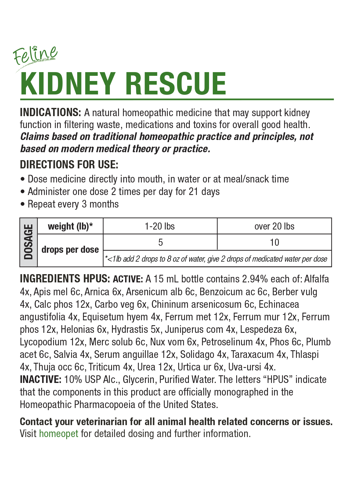 Crafted with high-quality homeopathic ingredients, HomeoPet Feline KIDNEY RESCUE is easy-to-administer, ensuring stress-free dosing for even the most finicky felines. Regular use may help maintain optimal renal health, making it an excellent addition to your cat’s wellness routine, especially for those at risk of kidney issues.