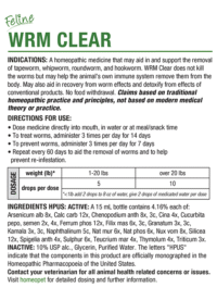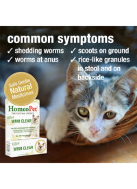 Common signs of worm infestation, such as scooting, rice-like granules in stool, worms around the anus, or shedding worms, may be alleviated with this natural formula. Feline WRM CLEAR does not kill the worms but may help your cat’s own immune system remove them from the body.