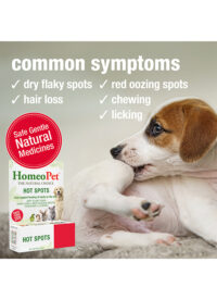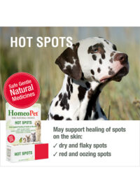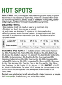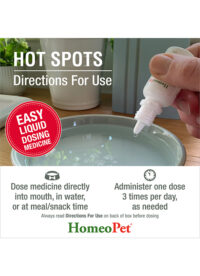 Formulated by veterinarians, HOT SPOTS may help relieve discomfort, reduce inflammation, and promote healthier skin in dogs, cats, and other small animals such as rabbits, ferrets, or even birds. This easy to administer liquid solution is made with high-quality homeopathic ingredients and is a natural solution for skin conditions in pets of all ages.