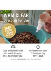 Common signs of worm infestation, such as scooting, rice-like granules in stool, worms around the anus, or shedding worms, may be alleviated with this natural formula. WRM CLEAR does not kill the worms but may help the animal’s own immune system remove them from the body.